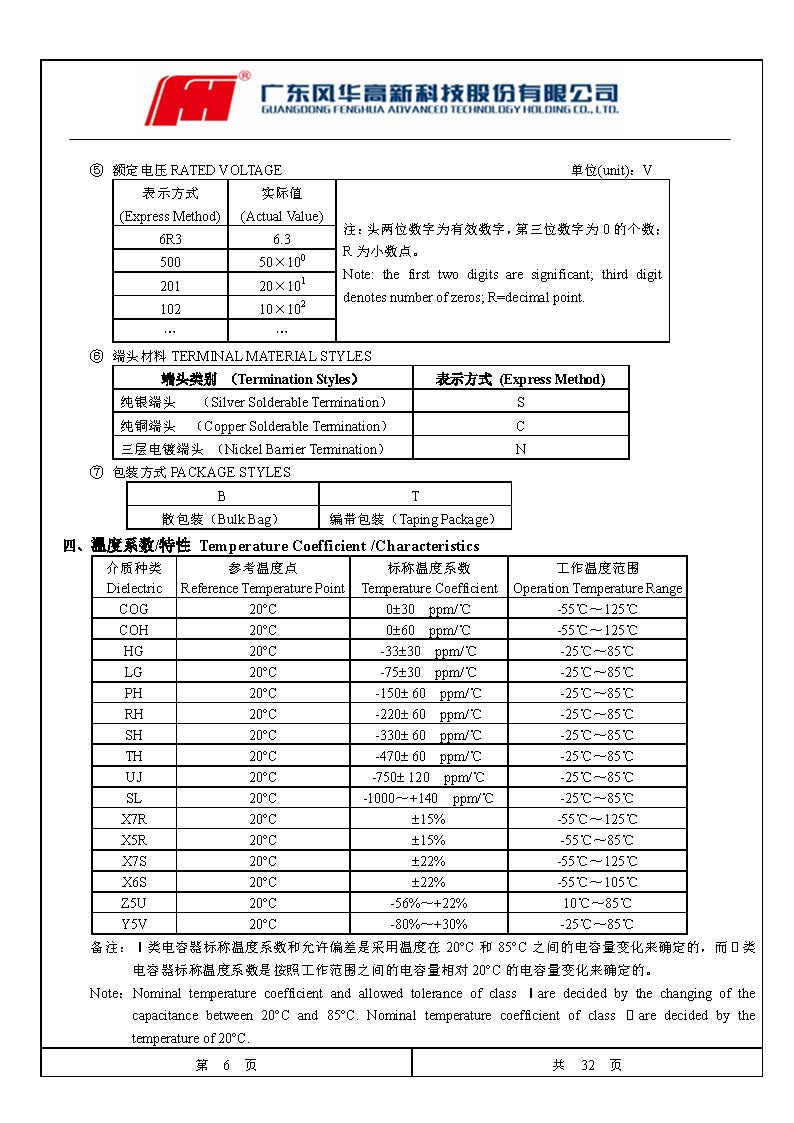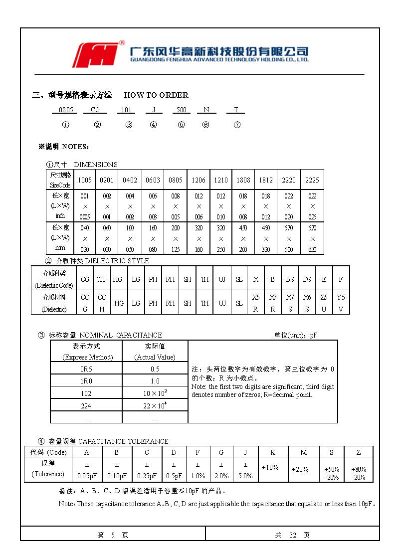 風(fēng)華高科貼片電容命名規(guī)則對(duì)照表
