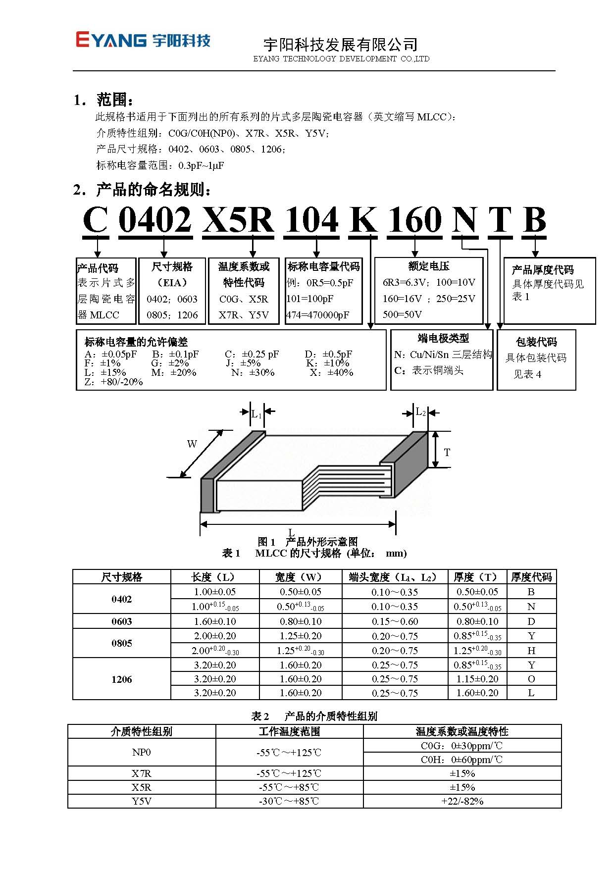 宇陽(EYANG)品牌-貼片電容-電子元器件