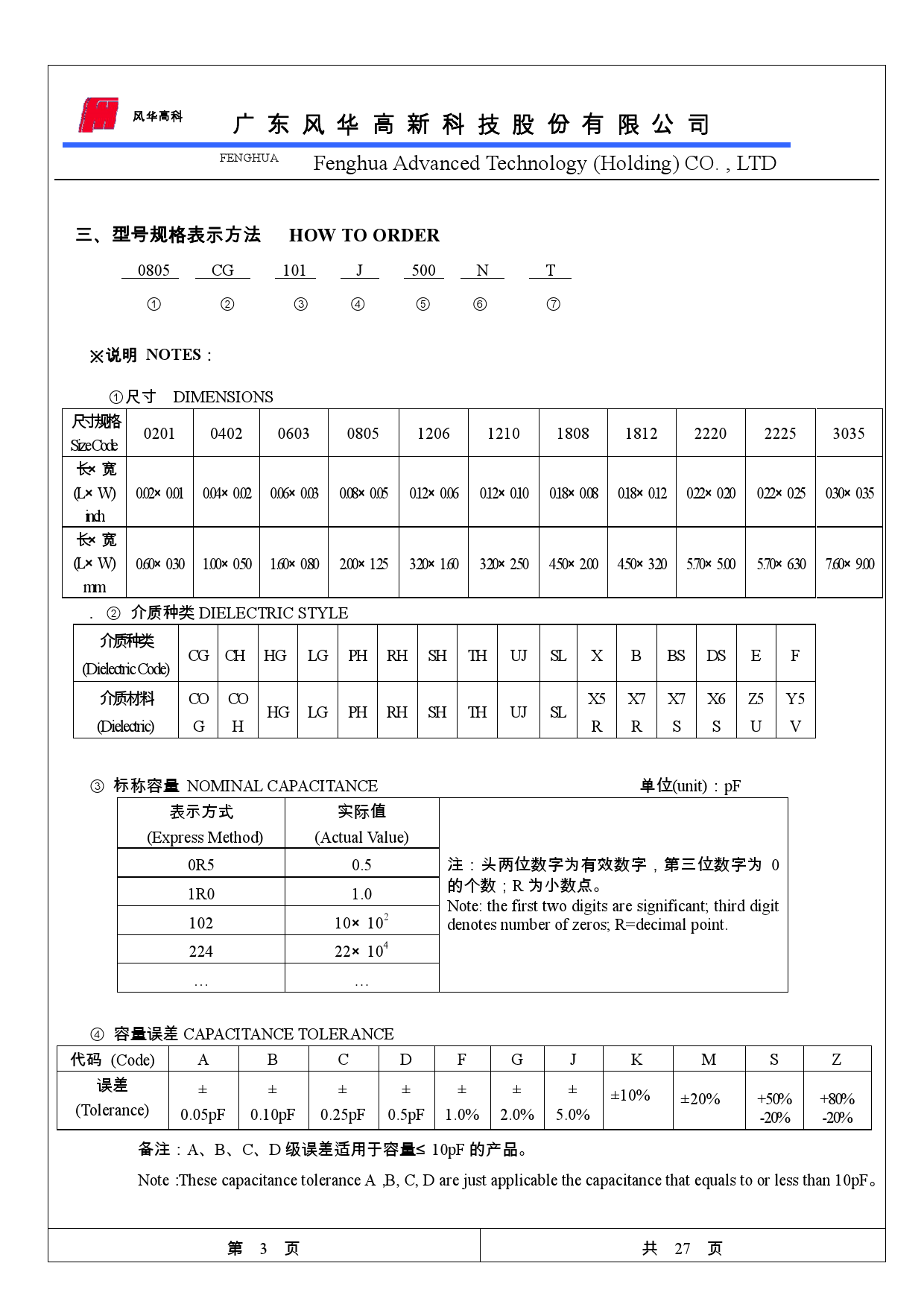 風華貼片電容型號對照表